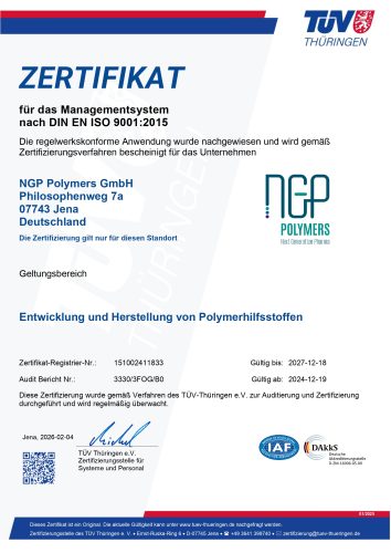 NGP Polymers GmbH erfüllt weiterhin die Anforderungen der ISO 9001:2015